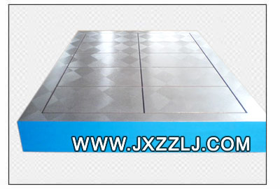 鑄鐵平板(鑄鐵平臺)的包裝:鐵板包裝和木制包裝兩種形式,平臺表表用塑料膜封裝,這種包裝適于平板內(nèi)陸運輸,并有良好的防潮、防震、防銹和防野蠻裝卸等保護平板的措施,以確保安全運抵現(xiàn)場。 鑄鐵平板(鑄鐵平臺)鑄鐵的運輸:運輸是保證平板不變形的一個重要環(huán)節(jié),所以運輸平板時要保證不超載,不超速,不疲勞駕駛, 不在天氣惡劣的情況下運輸。 鑄鐵平板(鑄鐵平臺)安裝: 鑄鐵平板(鑄鐵平臺)調(diào)試: 鑄鐵平板(鑄鐵平臺)工作環(huán)境: 鑄鐵平板(鑄鐵平臺)的使用注意事項:平板在使用時要先進行安裝調(diào)試。然后,把平板的工作面擦拭干凈,在確認沒有問題的情況下使用,使用過程中,要注意避免工件和平板的工作面有過激的碰撞,防止損壞平板的工作面;工件的重量更不可以超過平板的額定載荷,否則會造成工作質(zhì)量降低,還有可能損壞平板的結(jié)構(gòu),甚至?xí)斐善桨遄冃危怪畵p壞,無法使用。 平板在使用時要先進行安裝調(diào)試。然后,把平板的工作面擦拭干凈,在確認沒有問題的情況下使用,使用過程中,要注意避免工件和平板的工作面有過激的碰撞,防止損壞平板的工作面;工件的重量更不可以超過平板的額定載荷,否則會造成工作質(zhì)量降低,還有可能損壞平板的結(jié)構(gòu),甚至?xí)斐善桨遄冃危怪畵p壞,無法使用。 鑄鐵平板(鑄鐵平臺)的制造標準:按JB/T7974-1999制造)簡要描述 下載PDF文檔 鑄鐵平板(鑄鐵平臺)的質(zhì)量檢測: 1、鑄鐵平板(鑄鐵平臺)工作表面不應(yīng)有銹跡、劃痕、碰傷及其他影響使用的外觀缺陷。2、鑄鐵平板(鑄鐵平臺)工作表面不應(yīng)有砂孔、氣孔、裂紋、夾渣及縮松等鑄造缺陷。各種鑄造表面應(yīng)清除型砂、且表面平整,涂漆牢固。各棱邊應(yīng)修鈍。在精度等級低于“00”級的平板工作面上,對于直徑小于15mm的砂孔允許用相同的材料堵塞,其硬度應(yīng)低于周圍材料的硬度。在工作面上堵塞的部位應(yīng)不多于四處,其相互之間的距離應(yīng)不小于80mm。 3、在鑄鐵平板(鑄鐵平臺)的相對兩個側(cè)面上,應(yīng)設(shè)置有安裝手柄、吊環(huán)等吊裝設(shè)施的螺紋孔或圓柱孔。設(shè)計吊裝位置時應(yīng)考慮盡量減少因吊裝而引起的變動。 4、根據(jù)用戶要求,在板工作面上設(shè)置螺紋孔或溝槽后,這些部位不應(yīng)出現(xiàn)高于工作面的凸起現(xiàn)象。 5、鑄鐵平板(鑄鐵平臺)應(yīng)采用優(yōu)質(zhì)細顆料的灰口鑄鐵或合金鑄鐵制造。 6、鑄鐵平板(鑄鐵平臺)工作面的硬度應(yīng)為HB 170-220。 7、鑄鐵平板(鑄鐵平臺)工作面應(yīng)采用刮削工藝,對于“3”級平板工作面也可以采用刨削工藝,刨削工作表面的表面粗糙度按輪廓算術(shù)平均偏差Ra值應(yīng)不大于5um 8、鑄鐵平板(鑄鐵平臺)應(yīng)經(jīng)過穩(wěn)定性處理和去磁。 鑄鐵平板(鑄鐵平臺)平 面 度:可分實驗室級(Reference)、校驗級(Master)、工 具室級(Working) 三級 鑄鐵平板(鑄鐵平臺)平面研磨:平臺在很早的時候,人們利用三塊平臺相互匹配以產(chǎn)生真平平面。一個熟練而 又有耐心的 磨石師傅可以不藉助任何量測儀器,而僅利用三平臺相互匹配的 方式,做多次90度之旋轉(zhuǎn), 即可產(chǎn)生令人難以相信的真平程度。 鑄鐵平板(鑄鐵平臺)平面度: 1.AA級:其平面度(μm)= 1+1.6D2 (D為平臺對角線長或直徑),用於高度精密 之測定之用, 常用於實驗室。 2. A級:其平面度為AA級之兩倍誤差,常用於工具檢驗室作精密量具之檢驗之用。 3. B級:其平面度為AA級之四倍誤差,常用於工具檢驗室或在現(xiàn)場檢驗量具或劃線之用。 鑄鐵平板(平臺)的分類: 按照用途分: 鑄鐵平板(平臺)可以分為:基礎(chǔ)平板、劃線平板、檢驗平板、鉚焊平板、焊接平板、火工平板、鉗工平板、研磨平板、刮痧平板、壓沙平板、試驗平板、機床工作臺(如:落地鏜床工作臺)、三座標平板、模具墊板、拼裝平板(也叫裝配平板)。 或:基礎(chǔ)平臺、劃線平臺、檢驗平臺、鉚焊平臺、焊接平臺、火工平臺、鉗工平臺、研磨平臺、刮痧平臺、壓沙平臺、試驗工作臺(如:振動試驗工作臺簡稱振動試驗臺)、機床工作臺(如:落地鏜床工作臺)、三座標平臺、模具工作臺、拼裝平臺(也叫裝配平臺)。 按照形狀分類:普通平板(普通平臺)、圓形平板(也叫圓平板/圓平臺/圓形平臺)、方平板(方平臺) 按照表面工藝可以分為:平面平板和T型槽平板(T型槽平臺)